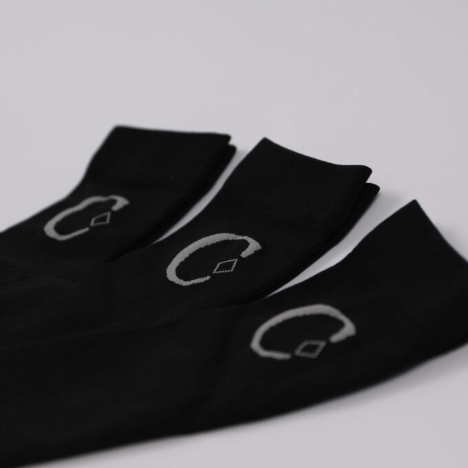 Very comfortable, anatomic shaped knee socks. Because of the nylon-/ spandex-mix these socks are thin, soft and at the same time very elastic. Perfect foot fit because of the hand sewed toes made of cotton.