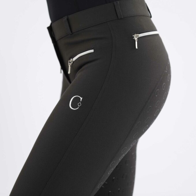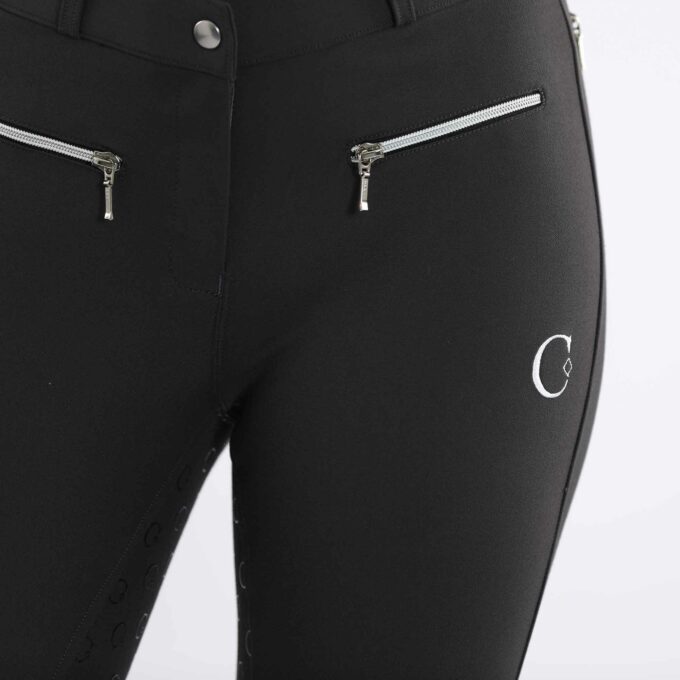The high quality bamboo viscose fabric in connection with the perfect fit make this breeches an absolute favourite item. CALORENA breeches are comfortable like a sport pant and at the same time charming a perfect shape because of the stretchy stability of the fabric. The C-logogrip and the YKK-zippers together with the C-logostitching at left tight underline the fine optic.