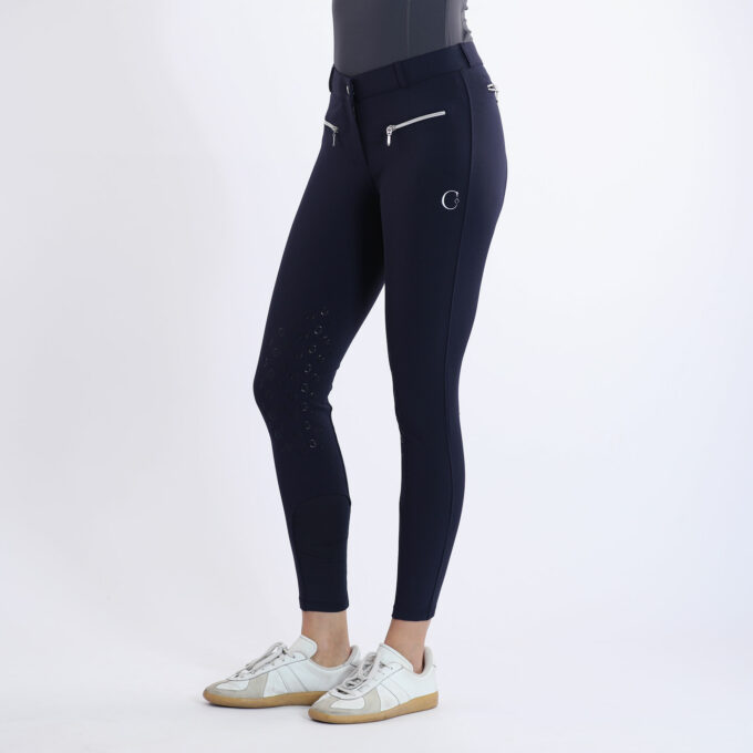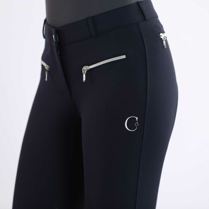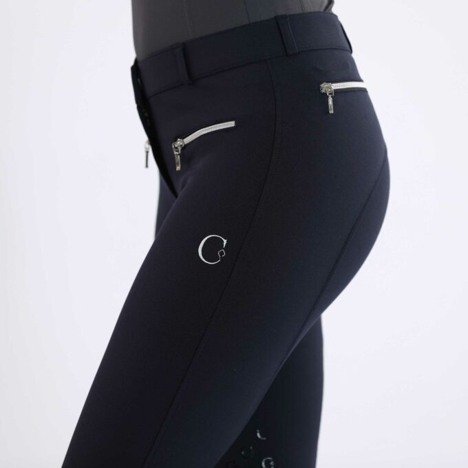 The high quality bamboo viscose fabric in connection with the perfect fit make this breeches an absolute favourite item. CALORENA KNEE breeches are comfortable like a sport pant and at the same time charming a perfect shape because of the stretchy stability of the fabric. The C-logogrip and the YKK-zippers together with the C-logostitching at left tight underline the fine optic.