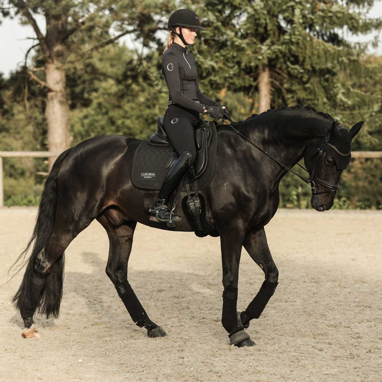 Complete your look: our SADDEL PADS are perfectly matched with our FLY VEILS and BANDAGES creating a stylish and unified appearance. Elegant, functional and a real eye catcher. The perfect combination for training and competition.