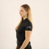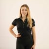 The elegant button placket and silver logo prints on the upper arms make it an absolute eye-catcher whether during training on the horse, on the treadmill in the gym or during the morning jogging in the woods.The perfect fit, the soft and at the same time breathable material, makes this favourite part to an absolute must-have for every sport enthusiastic rider! Due to the slightly rounded shape at front and back part it looks also very nice when you wear this shirt over the trouser.