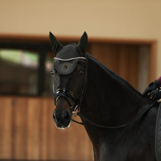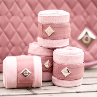 The polo bandages CAVALENTIN impress with high-quality, breathable, anti-pilling fleece material, as well as elegant metal logo and velvet details (matching the CAVELLY saddle pad). The bandages are fastened with a sturdy velcro closure and are very soft and shape-retaining. They are delivered as a set of four in a mesh bag, which can also be used as a laundry pouch.