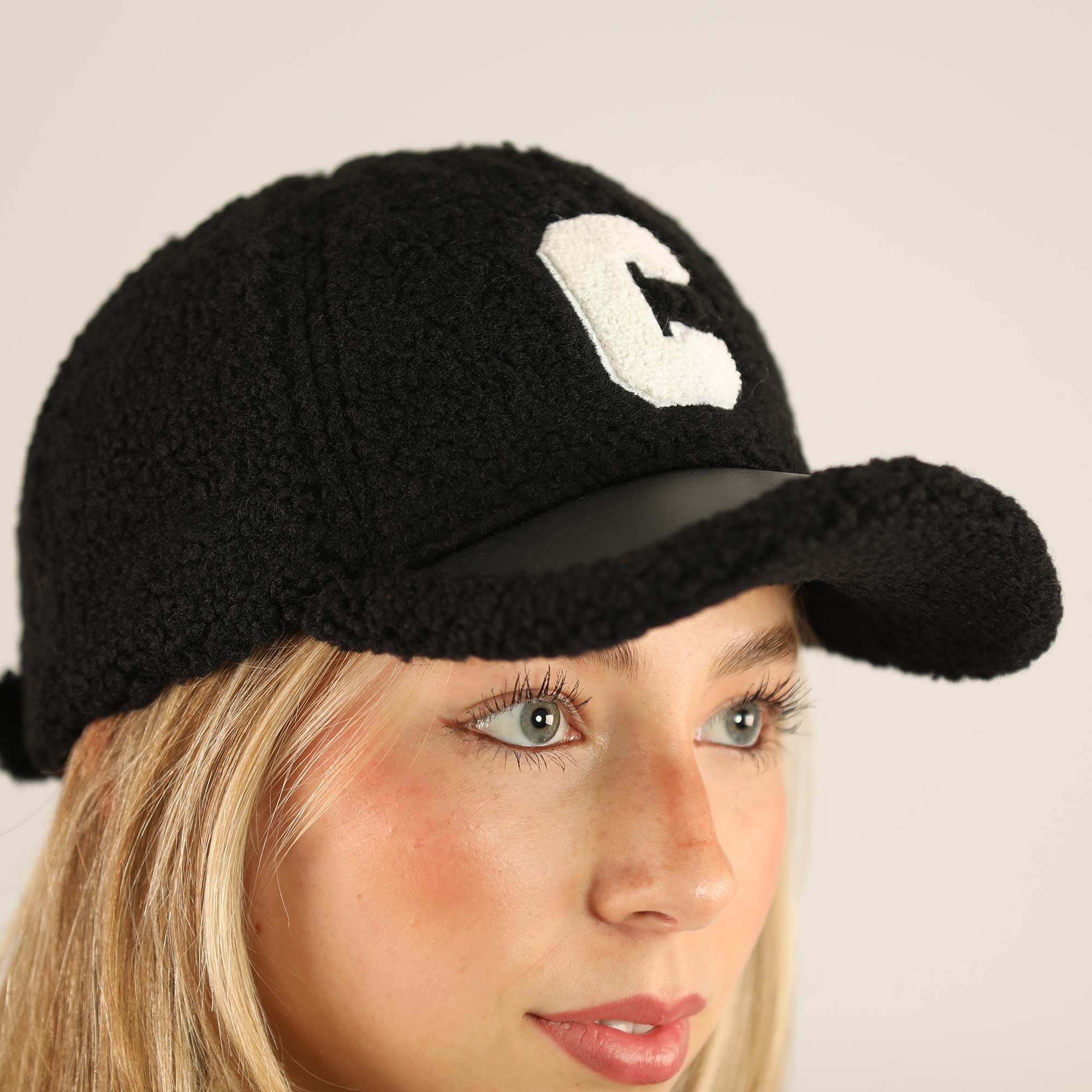 Stylische Cappie in Teddyoptik mit C-Logo. Durch Klettverschluss auf der Rückseite lässt sich die Weite gut einstellen.