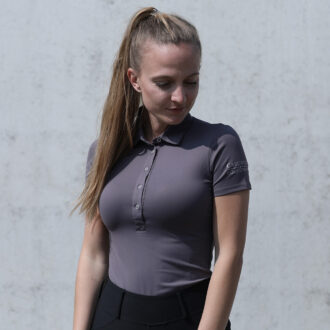 Figurbetontes Funktionskurzarmshirt aus dem neusten high-tech Sportmaterial! Der schwarz-matte YKK-Zipper und glitzernde Logoprint am Rückenteil machen das Teil zu einem absoluten Eyecatcher, ob beim Training auf dem Pferd, auf dem Laufband im Fitnesstudio oder bei der morgendlichen Joggingrunde im Wald. Die perfekte Passform, das weiche und gleichzeitig atmungsaktive Material mit UV-Schutz runden dieses Lieblingsteil zu einem absoluten Must-have für jede sportbegeisterte Reiterin ab!