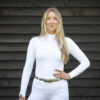 Figurbetontes Funktionslangarmshirt aus dem neusten high-tech Sportmaterial mit abgesetzten Manschetten! Der enganliegende, hohe Stehkragen, wird durch eingenähte Magnete geschlossen. Die silbernen Logoprints an beiden Ärmeln sind schöne, dezente Eye-Catcher. Die perfekte Passform und das weiche sowie gleichzeitig atmungsaktive Material mit UV-Schutz runden dieses Lieblingsteil zu einem absoluten Must-have für jede sportbegeisterte Reiterin ab!