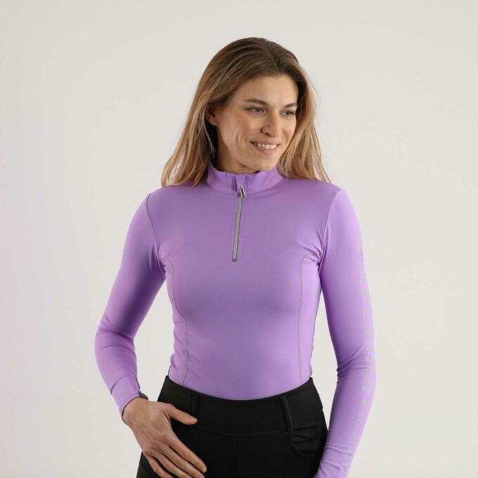 Figurbetontes Funktionslangarmshirt aus dem neusten high-tech Sportmaterial, welches nach dem Sport blitzschnell trocknet! Der silberne YKK-Zipper und grauem Logoprints am Unter- und Oberarm machen das Teil zu einem absoluten Eyecatcher, ob beim Training auf dem Pferd, auf dem Laufband im Fitnesstudio oder bei der morgendlichen Joggingrunde im Wald. Die perfekte Passform, das weiche und gleichzeitig atmungsaktive Material mit UV-Schutz runden dieses Lieblingsteil zu einem absoluten Must-have für jede sportbegeisterte Reiterin ab!
