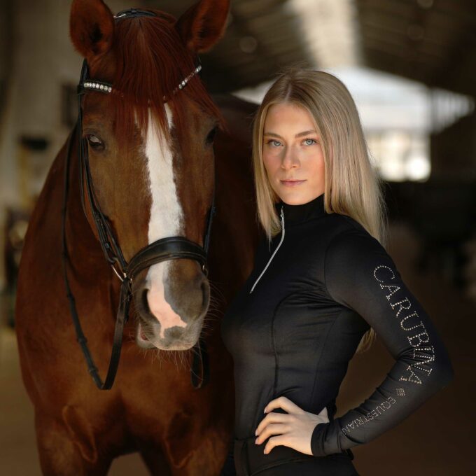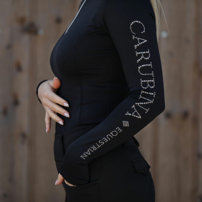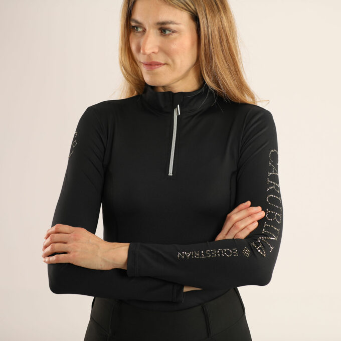 Das CAPORTO Crystal Sparkle Langarmshirt ist ideal für Reiterinnen, die Leistung, Stil und subtile Glamour-Details vereinen möchten.