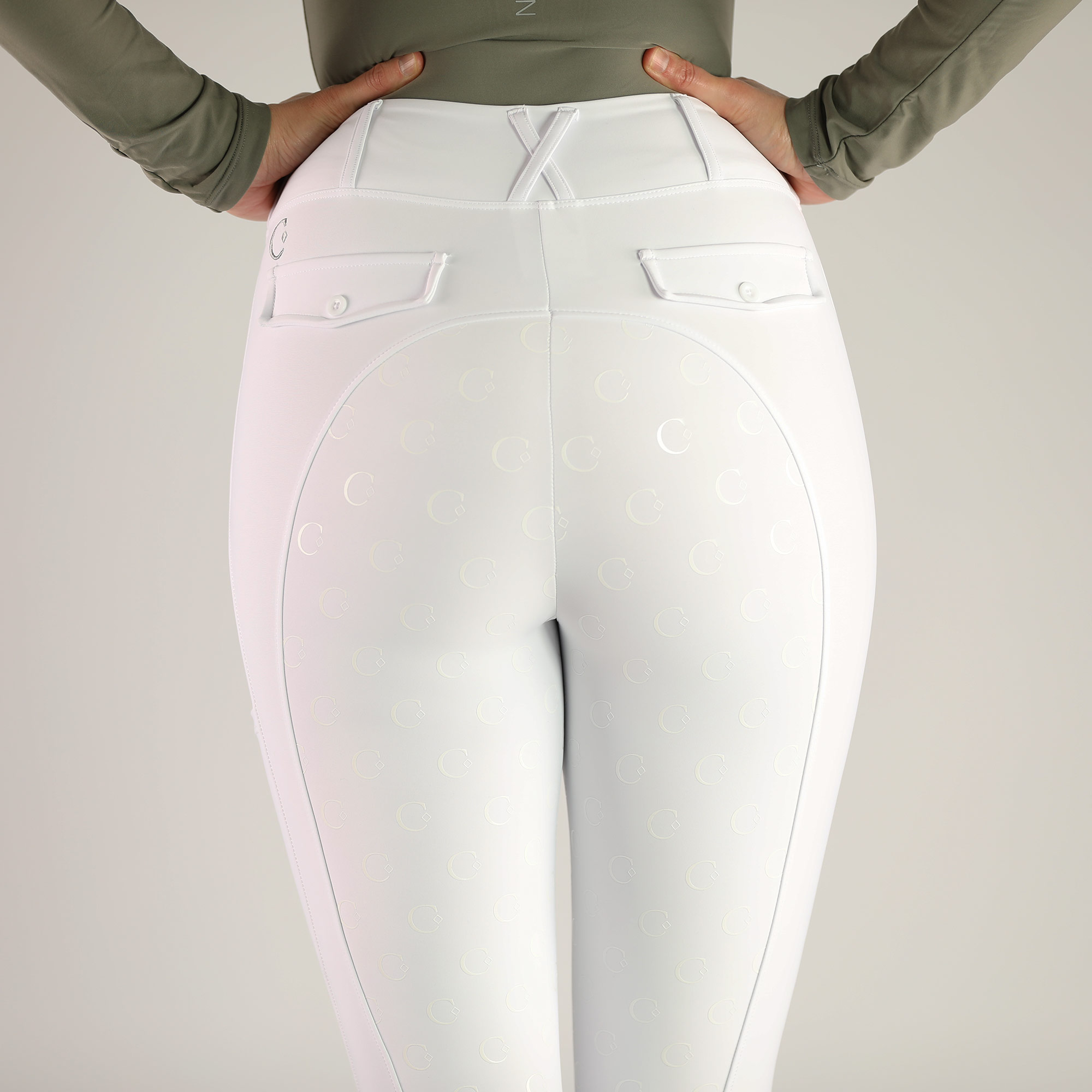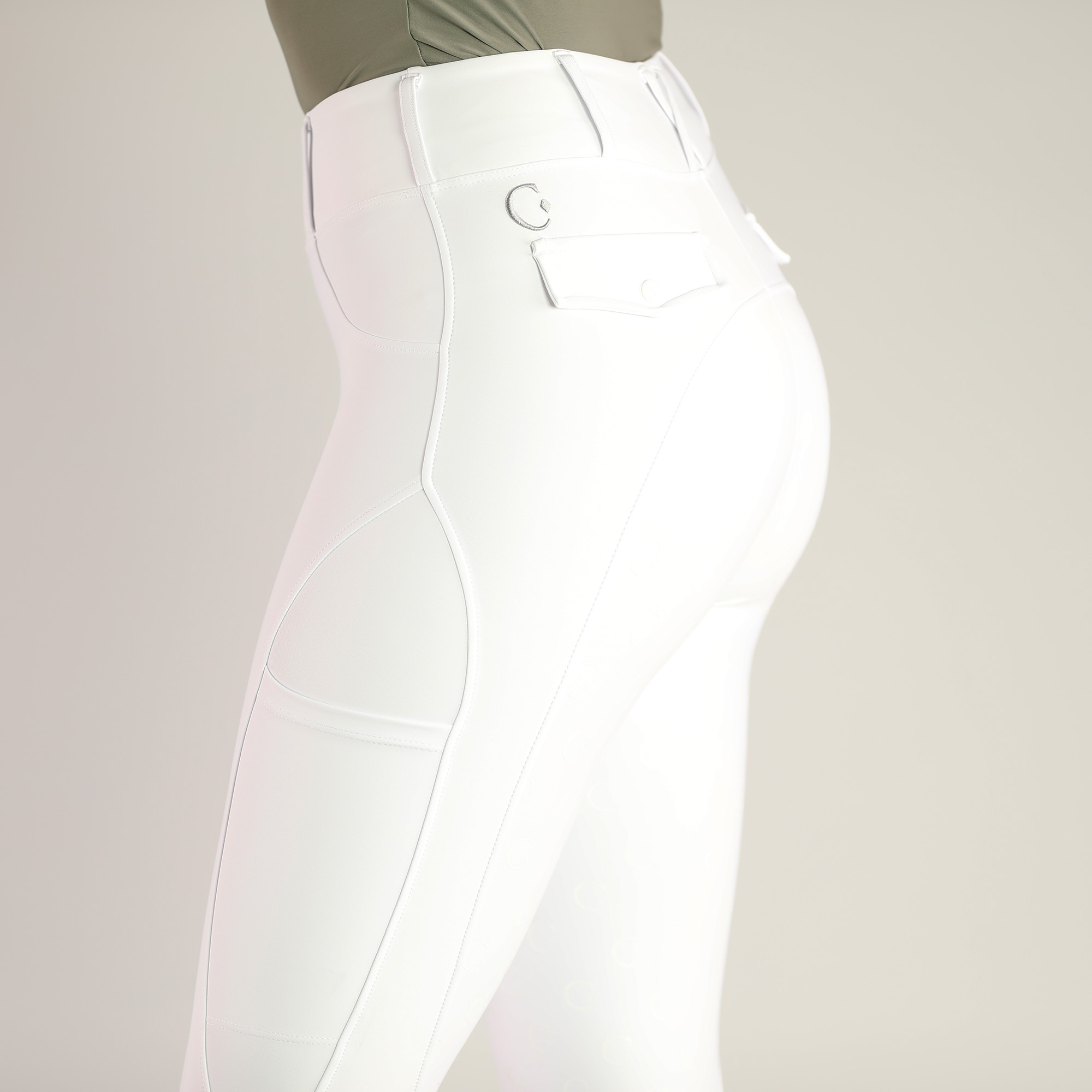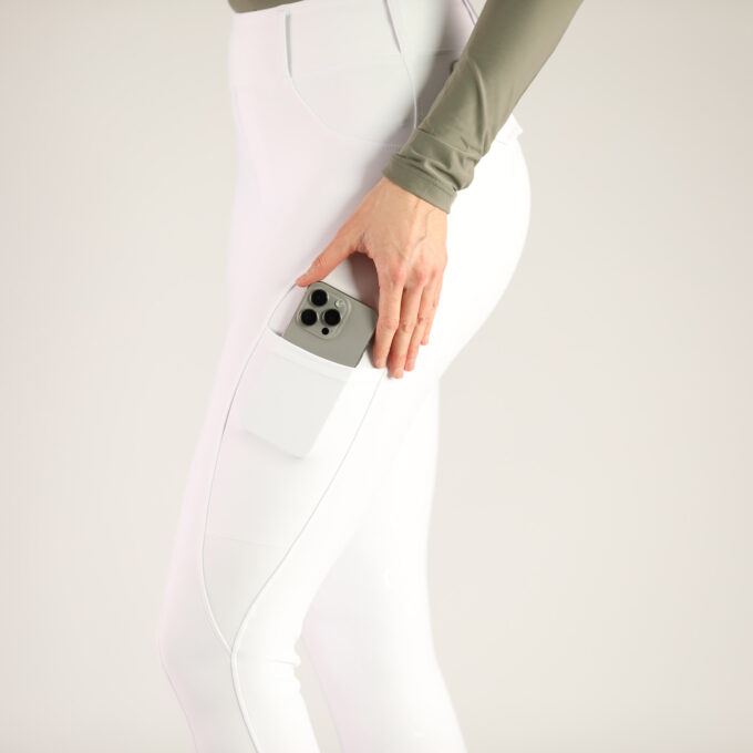 Besondere Details wie der hochwertige C-Logo Fullgrip, eine praktische Handytasche und elegante Gürtelschlaufen machen die Reitleggings zu deinem zuverlässigen Allrounder.