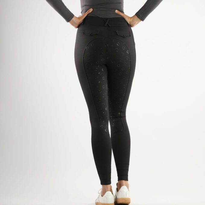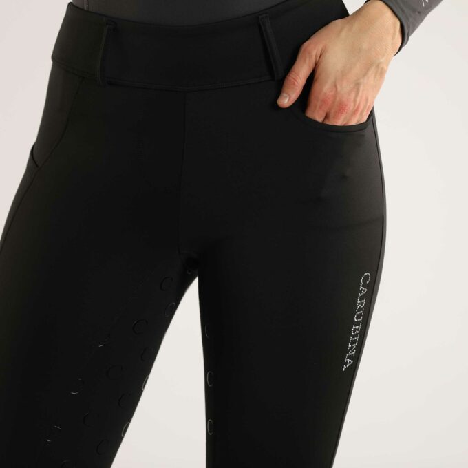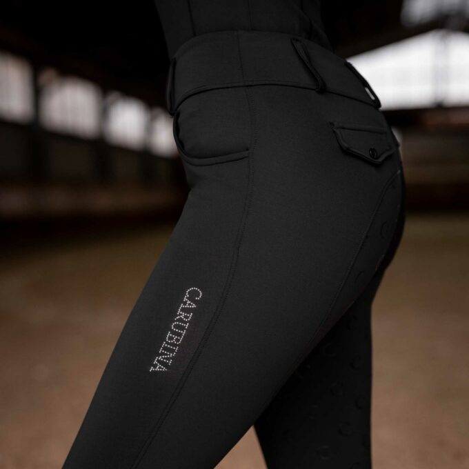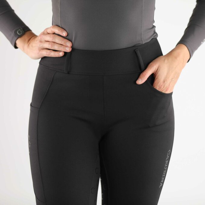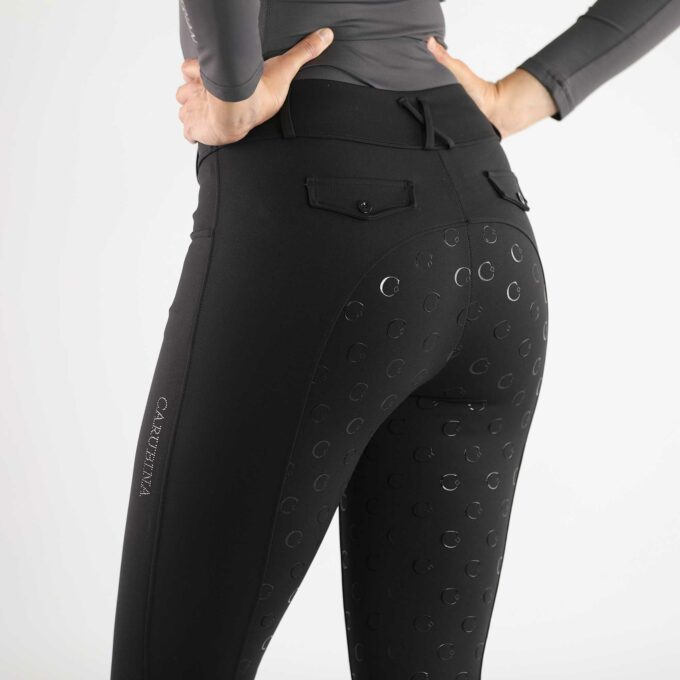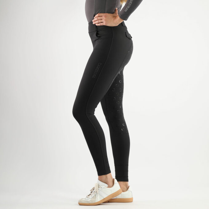 Die CATRINY SMART-SKIN FULL Reitleggings vereint funktionale Technologie mit schlichtem, sportlich-elegantem Design. Das 4-Wege-Stretch-Kompressionsmaterial sorgt für eine optimale Passform und unterstützt die Muskulatur angenehm bei Bewegung.